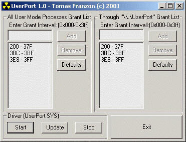 If you want to uninstall Userport, please note it does not have an uninstall program so you have to delete the files manually. Before you delete the files, please make sure you run userport.exe first and click the Stop button. Then close userport.exe. Otherwise Windows will continue to try and load the non-existent device driver (userport.sys) each time it starts up.