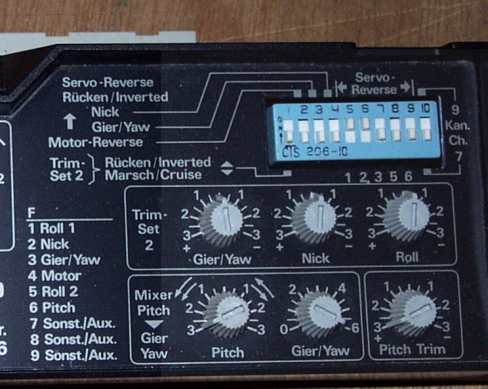 - Dip switches were for servo reverse and channel setup.