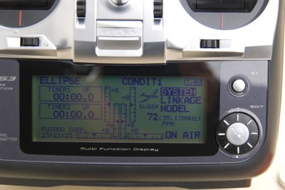 The goals for programming the Futaba 12FG were: (a) to minimise the number of switches needed to control the phases of flight and (b) allow adjustment of mixing and differential during flight. In short, to replicate the setup that I've honed on the Multiplex 4000 over many seasons of competitive flying.