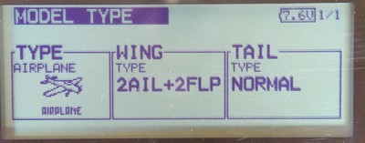 The Futaba 12FG provides a wide range of options when creating a model. For aircraft and gliders, there is a choice of seven wing configurations, from the simplest single-servo setup, to wings with eight servos. Tailless wings are similarly supported. Tail configuration options include V-tail and 'ailevator' (tailerons). For helicopters, there's a choice of 8 swashplate configurations.
