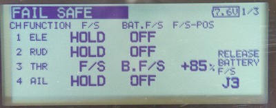 PCM-G3 provides programmable failsafe of servo positions in the event of signal loss. There is also a separate battery fail safe.