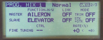 Many mixers also offer a 'fine tune' facility whereby a mixer rate can be modified dynamically. For example, you can use a volume knob to adjust aileron differential. Or the amount of ELE-FLAP mixing can be automatically reduced as flaps are deployed.