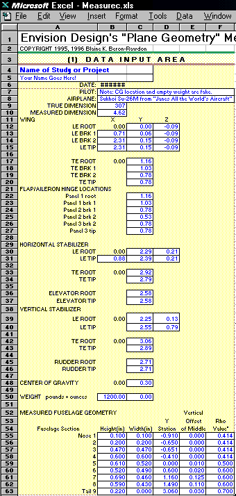 Tips for data entry are provided in the documentation - including advice on how to measure up a full-size aircraft!