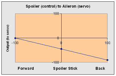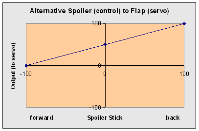 However, there is a solution if you don't mind using only half the servo travel for the spoiler function, from servo centre to one end point. See the curve below.