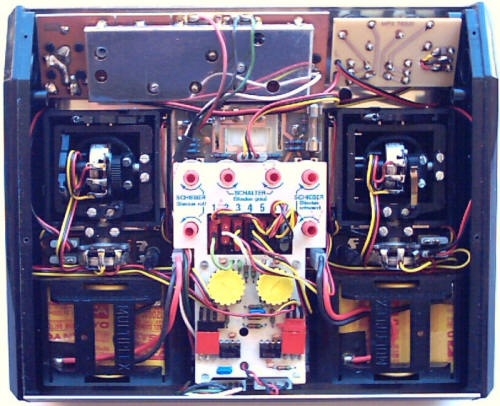 Inside. The two yellow knobs are for the mixer.