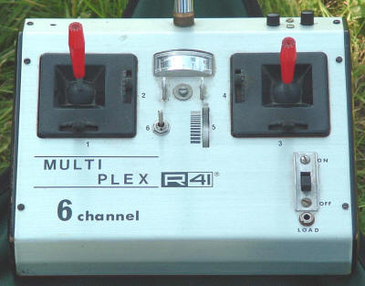 Six channels on 35 MHz with five proportional and one switched channel. Long conical tip antenna > 1 meter. The Tx's owner is a boy whose father bought this set around 1974. The Tx is still in use and works flawlessly! It is used for small soarers and trainers.