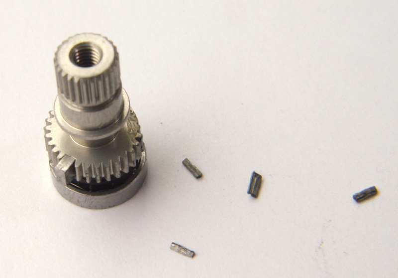 The Hitec 5125 is a popular 10mm digital wing servo which offers good performance. However several pilots have found that the output gear is prone to breaking. Here are some pictures this issue, and how to dismantle the servo. (The servo was damaged when I pranged my Falcon during a Winter League comp!).