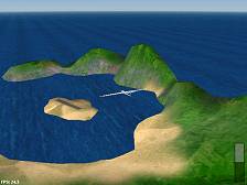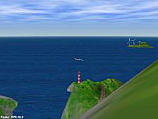 ![]() Discus flying over the lighthouse. Island in the distance has rotating windmills and airstrip |