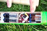 Two LiMnO2 13 Ah cells power Rx, servos and wing tip LEDs.